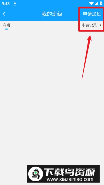 3.点击页面右上角的申请加班选项;