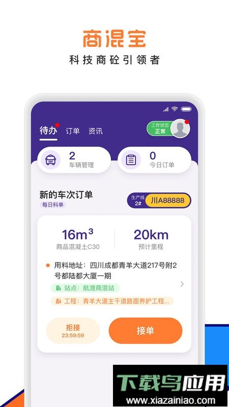 商混宝司机端手机版是一款面向混凝土运输司机的接单应用,软件详细展示各类订单信息,司机接单后完成配送即可获得收益。系统采用智能派单模式,覆盖多个区域,订单来源稳定,有助于保障司机的收入。
