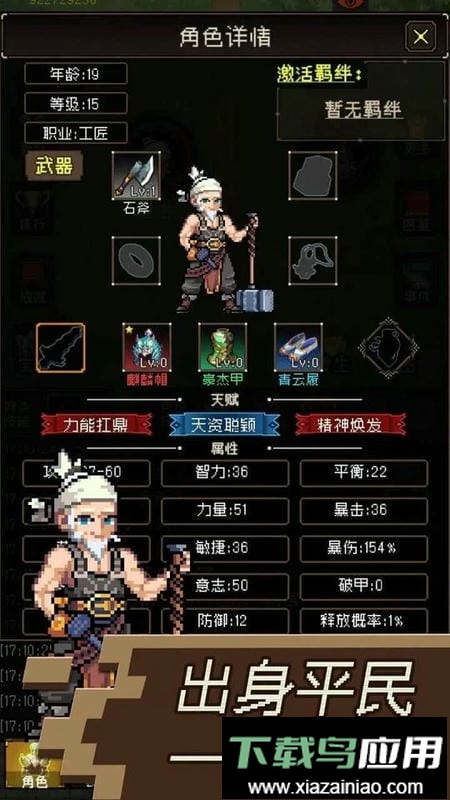 这是一款像素风三国主题游戏,虽然以无双为名,核心却是放置挂机的玩法;你可以随机生成天赋,并陆续解锁军师、神箭手、工匠、武将、死士等五种职业,最终成长为三国战场上的顶尖统帅!在征途过程中,你会遇见各路豪杰并将其纳入麾下,更有知名的三国红颜相伴左右,共同成就霸业。