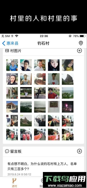 移动版主要功能包括:留言板、消息通知、村民日记、图片库、用户列表、人名录以及村庄介绍。
