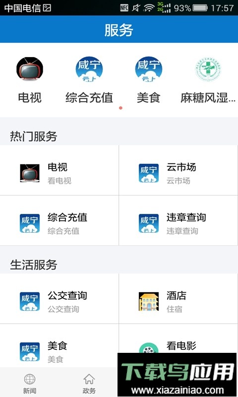 该应用是咸宁市政府官方指定的移动政务客户端,全面融合了省、市两级的新闻动态、政务办理与便民服务功能,致力于成为本地居民获取信息与办事的核心窗口。