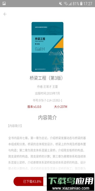 智课学堂App是与人民交通出版社道路桥梁工程技术系列教材配套开发的工具。用户可对三维模型进行缩放、旋转、剖切等操作,观察模型的运动与拆分动画,并能浏览相关的教学视频、图片等扩展学习资料。