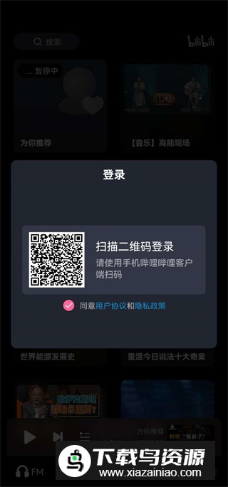 1. 首次打开软件需要登录,使用手机哔哩哔哩扫描屏幕上显示的二维码即可完成;
