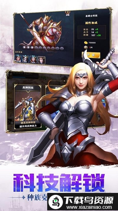 2. 策略对战深度强化,十大兵种存在特性克制关系;游戏中包含皇家狮鹫、十字军、圣骑士、僧侣等十个兵种,每位英雄统领一类部队,兵种间相互制约。英雄进阶后可解锁特殊兵种能力,进一步放大克制效果,让排兵布阵的战术对抗更具真实感。