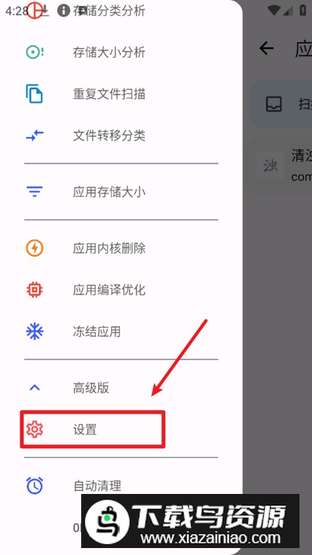 2.点击左上角菜单图标,向下滑动找到并进入设置选项。