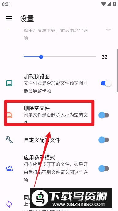 3.最后在设置中找到【删除空文件】选项,点击开启即可。