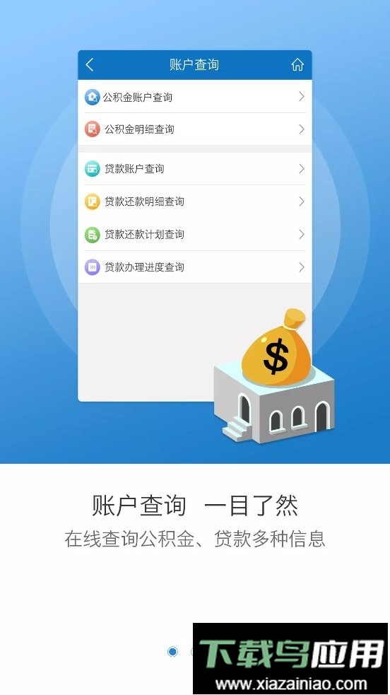 专注于个人公积金账户信息查询,可查看缴存信息、缴存明细、贷款信息、还款明细、提取进度、贷款进度、预约记录、行政执法情况以及信用状况等内容。