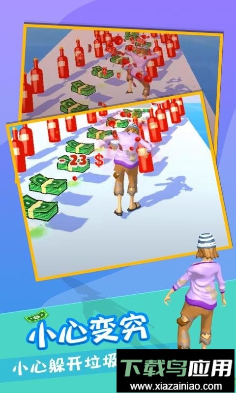 在爱情或金钱这款充满魔性的跑酷游戏中,玩家需要灵活操控角色,在铺满钞票与啤酒瓶的赛道上不断前进。收集钞票能让角色逐渐变得富有,而碰到啤酒瓶则会导致财富缩水。你必须谨慎地穿越各种障碍,通过精准的操作积累财富,最终赢得美好的爱情结局。