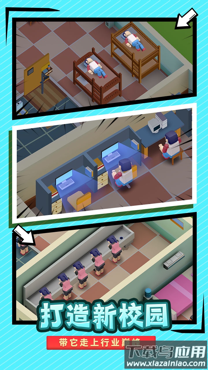 1、游戏细致还原校园各类场所,食堂、宿舍、教室等均可按个人喜好建造布置。