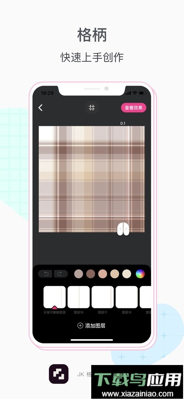 格子酱app是一款专注于jk格裙设计的移动工具,它集成了多样化的创作功能,用户可以通过自定义设计实现个性化表达,应用内提供取色工具、样板快速套用、标准色卡参考以及单循环蒙版等实用模块,让每个人都能在手机端自由发挥创意,轻松完成格柄图案并一键生成效果图。