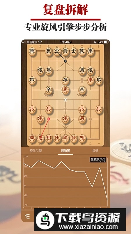 复盘拆解功能基于云端智能分析,不占用手机资源;对局后可生成详细分析报告,实时局势图帮助玩家清晰了解每一步的得失。