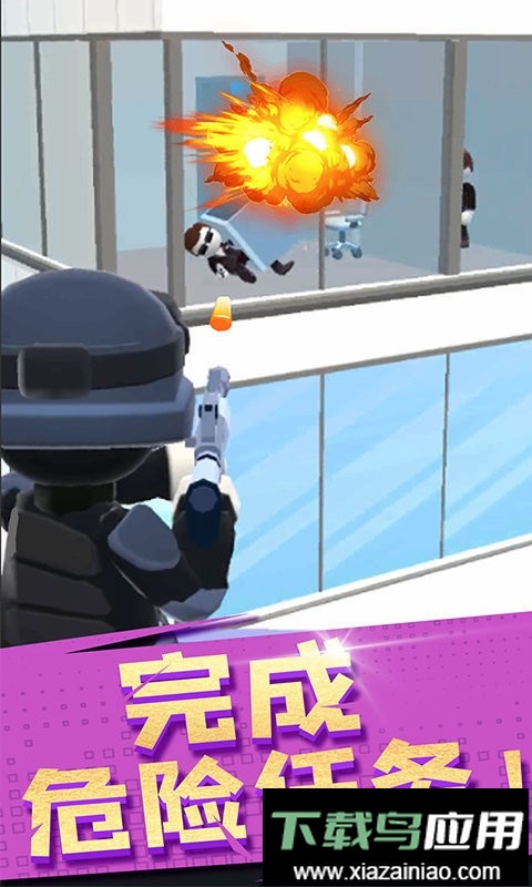 这是一款操作手感畅快的休闲动作游戏。玩家操控的角色将乘坐直升机环绕大楼飞行,通过点击屏幕发射子弹,击溃楼内的犯罪分子。游戏中可以射击炸弹引发连环爆炸,也能凭借精准射击获取更高分数,让你亲身感受如同动作电影般的刺激节奏。多种枪械与角色皮肤可供解锁选择,显著提升了游戏的丰富程度。