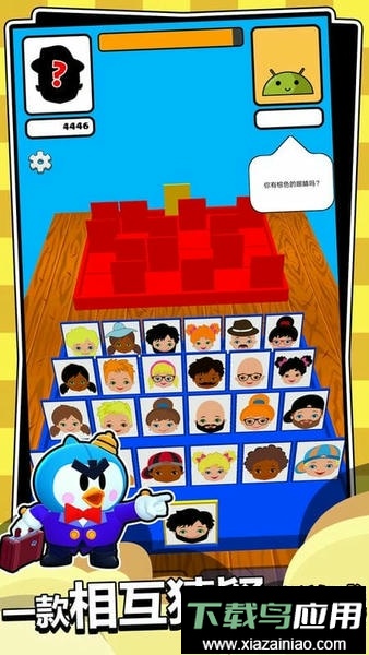 人类派对大作战是一款益智类手机游戏,玩法类似于经典的桌面游戏“猜猜我是谁”。游戏以疯狂猜题为核心理念,支持多人共同参与。