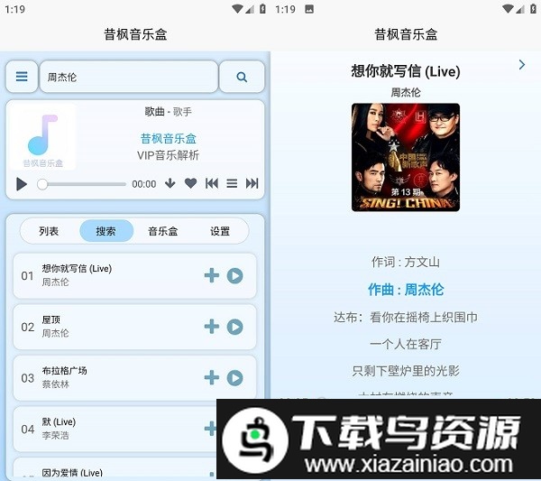 2、通过歌手名称直接搜索作品,想听的音乐一键即可点播;