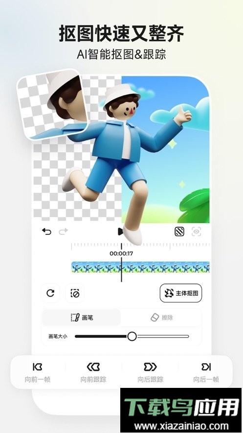 借助智能抠图功能,可以快速去除视频背景,让创作摆脱场景限制;这一功能使抠像操作变得简单,让画面主体更突出。