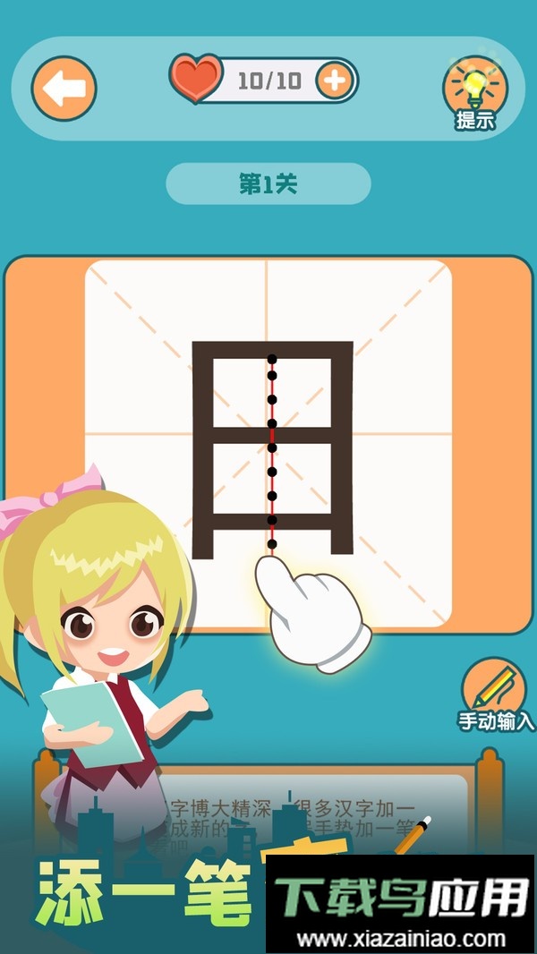 1、在关卡内的文字上增添一笔,使其成为另一个汉字即可过关;