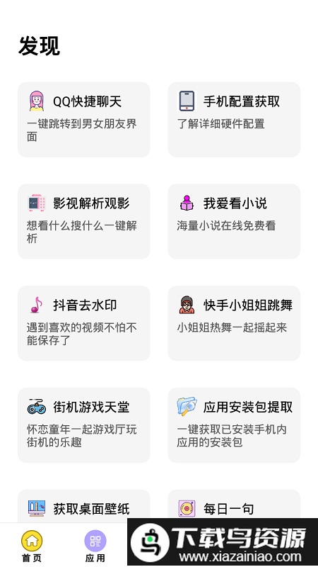 这是一款功能全面的应用下载工具,能够免费获取各类小说阅读软件、游戏辅助工具以及影视追剧应用,只需一键操作便可得到优质资源,软件界面简洁,打开后可以直接使用,省去了复杂的流程。