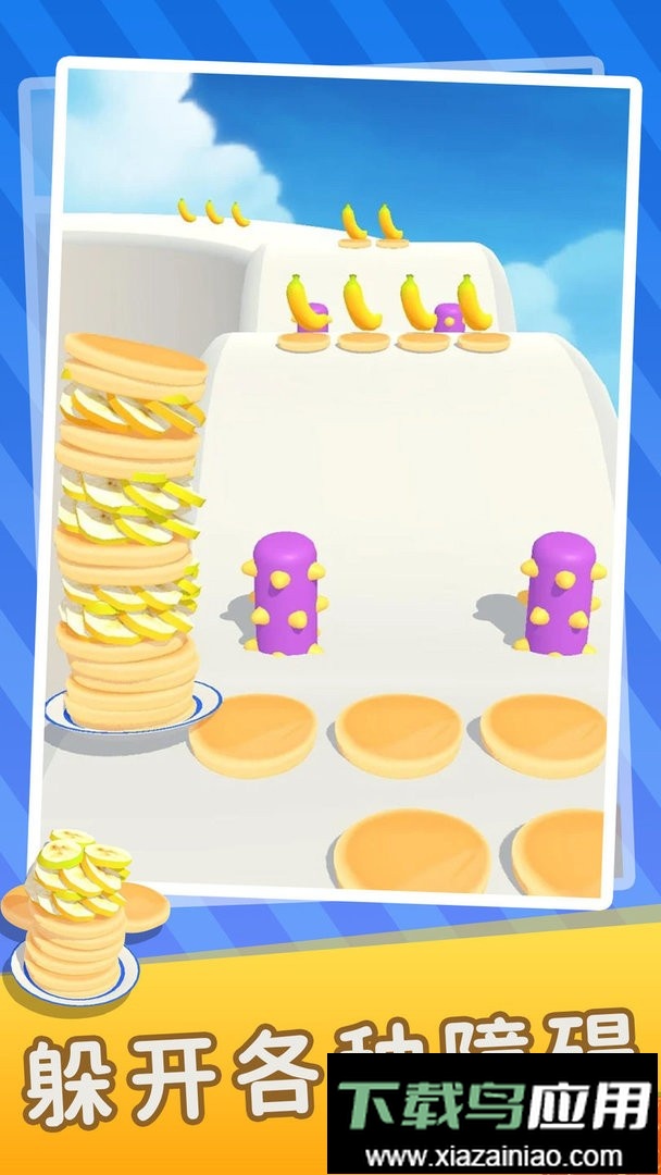 2. 开局仅有一个盘子,通过拾取前方的香蕉与煎饼,帮助自己顺利闯关;