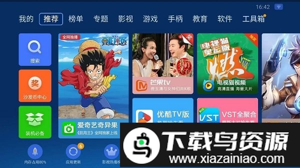 平台收录了大量适配电视的直播、点播及游戏应用,每个类别都经过仔细划分,方便用户快速查找。