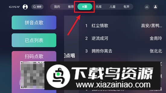 2. 点击界面上方的k歌功能页面
