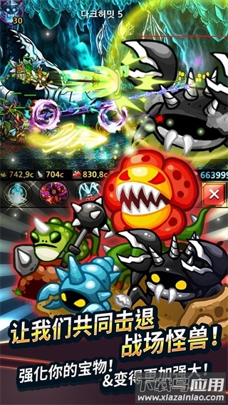 通过战胜怪物获取金币,你能召唤出更强大的兵种,最终挑战首领。游戏提供了超过一百种特色士兵和二十多种能力各异的首领供你收集与使用。