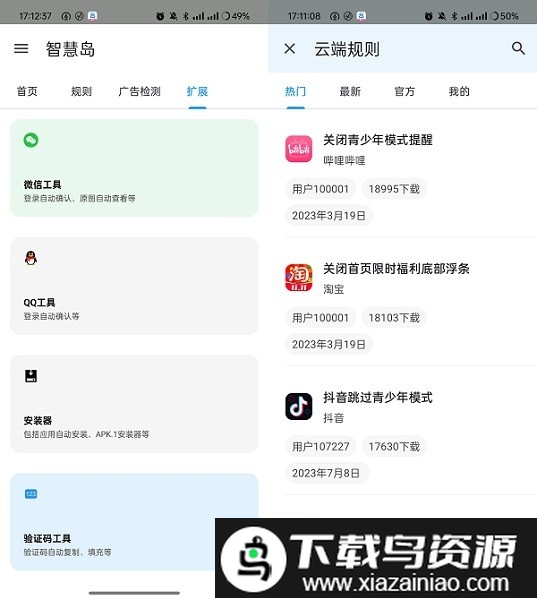 这是一款用于跳过广告的实用软件,其理念与GKD类似,设计简洁而功能强大。用户不仅可以自定义跳过规则,还能导入由网友分享的规则集。智慧岛的特色在于提供了云端规则库,软件内直接集成规则下载功能,极大方便了用户添加与管理规则。感兴趣的朋友不妨尝试一下。