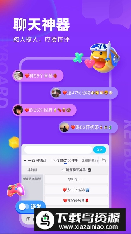 KK键盘应用是一款设计简洁却功能强大的游戏聊天工具;无论是游戏中对局交流,还是日常社交斗图,都能通过它快速搞定。