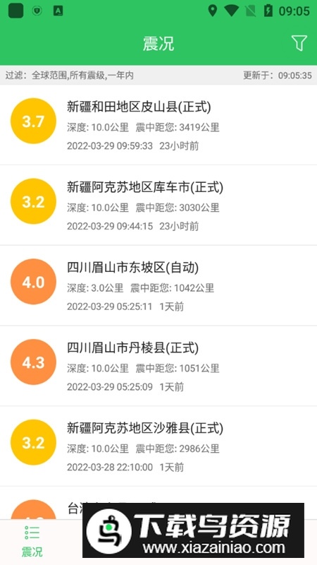 1、实时查询:以列表与地图两种形式呈现全球最新地震动态,用户可自定义筛选地震范围、发生时间及震级大小。