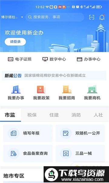 新企办是新疆推进数字政府建设的关键措施,作为全疆企业服务的统一入口,该应用聚焦企业从设立到发展的全过程,为全疆超过两百万商事主体提供综合服务;平台整合了办事申报、政策查找、招商对接、商机发现、意见反馈与企业专属码等多种功能,实现指尖轻触即可办理各项业务。