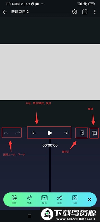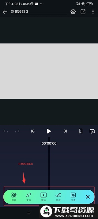 新项目初始没有内容,需要自行编辑,再次点击右下角“绿色加号”可添加素材;