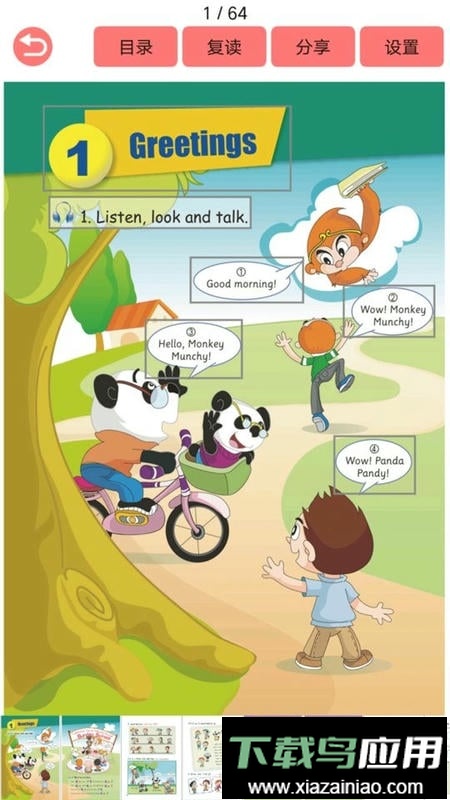 剑桥少儿英语应用融合了增强现实、复读、点读、口语练习、习题测试和词典查询等多个功能模块,为孩子提供一站式的英语学习体验。