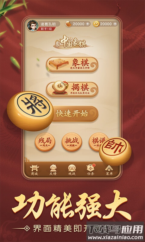 这是一款功能全面的中国象棋游戏,不仅操作界面美观,而且内置了丰富的棋艺内容与对战资源。
