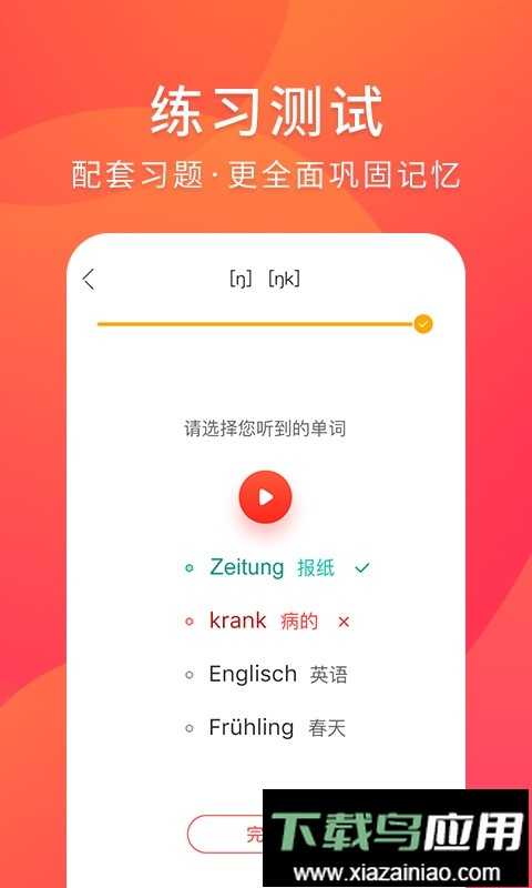 设有字母发音录播课程,帮助用户建立对德语发音的基本认知。