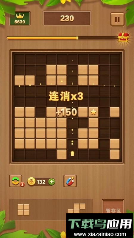 2. 玩法类似于1010,将各种形状的方块拖放到棋盘格内;