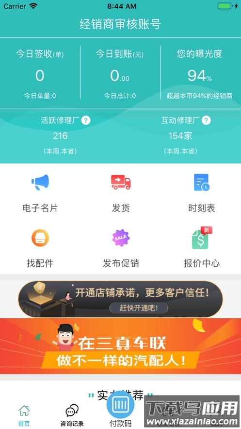 三真经销商APP是一款面向汽车配件经销商的移动应用,它集合了多项实用工具与服务,助力经销商高效开展日常业务。应用内设有首页、咨询记录、付款码、收发记录及个人中心等主要板块,提供电子名片、发货管理、时刻表查询、配件寻找、促销发布以及报价中心等功能,方便用户随时处理生意事务。