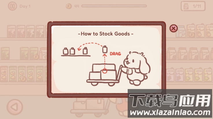 游戏背景设定在一家零食超市,你将协助一位可爱的狗狗店长共同打理生意。通过观察市场动向,制定合适的运营计划,保证店铺每日顺利运转,体验充满乐趣的经营过程。