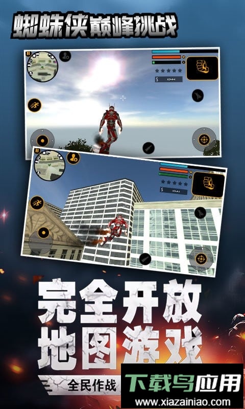 1.扮演强大而敏捷的蜘蛛侠,勇敢向前,在城市各个角落高速移动;
