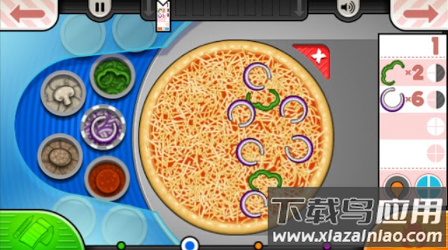 1、制作过程里,第一步摆盘往往最需要耐心。必须依据订单提示,在披萨饼对应的区域均匀铺上正确的配料。