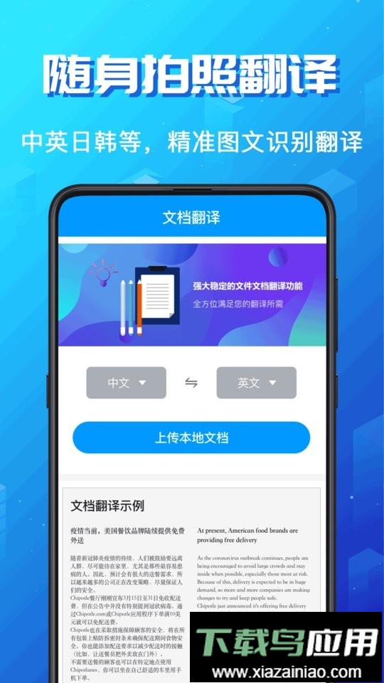 支持一键上传多种格式文档进行翻译,可处理PDF、Word、PPT、JPG等文件,翻译速度快,能高效处理大量文本,节省用户等待时间。
