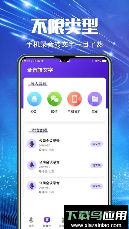 万能录音机软件是一款功能全面的音频录制工具,用户能够通过它在移动设备上完成清晰的声音记录。该应用兼容多种音频格式,并设有不同录制模式以适应日常对话、工作会议或通话等场景。录制过程中可实时回放与剪辑,还具备自动录音、定时录制及文件分类管理等便捷功能,整体操作简单直观,能满足各类录音需要。
