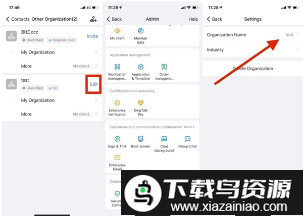 在手机端查看企业名称的路径为:CONTACTS - EDIT - OTHERS - MORE - ORGANIZATION NAME。