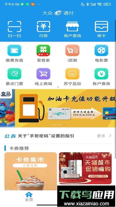 大众e通付手机版是一款便捷的手机支付应用,用户可通过它完成日常缴费、购买景点与电影门票,并支持扫码付款等多种功能,为持卡人提供安全高效的综合支付服务。