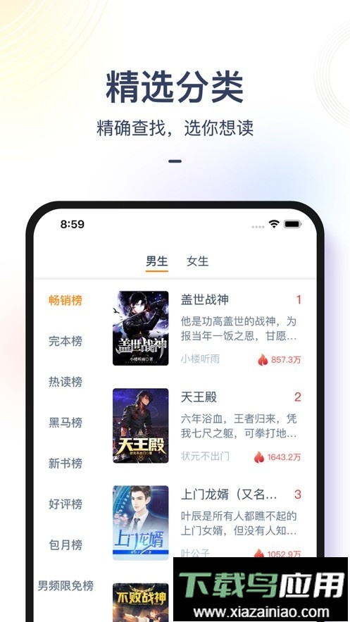 该应用拥有极为细致的小说分类体系,提供大量免费热门作品供用户选择;这里汇集了多种题材的精选小说,方便读者快速找到自己想看的内容,充分满足日常阅读需要。用户每天都能接触到广受好评的图书资源,系统也会依据个人阅读偏好推送相关书籍;大家可以随时加入话题讨论,通过关键词一键分享心仪的作品或搜索感兴趣的内容。