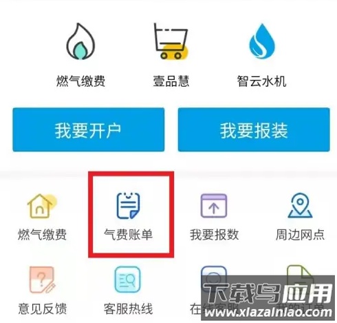 2、进入缴费页面后,点击“查看气费账单”按钮;