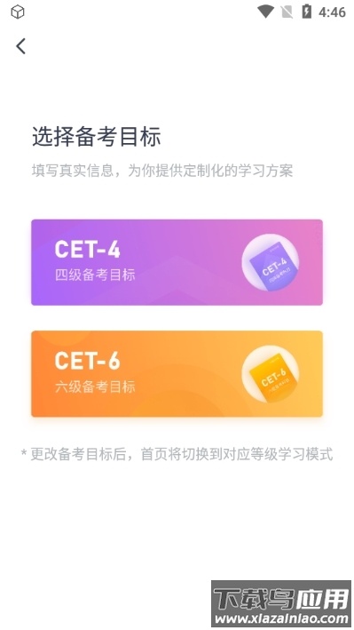 3、将备考目标修改为六级,确认后所有学习内容将同步切换;