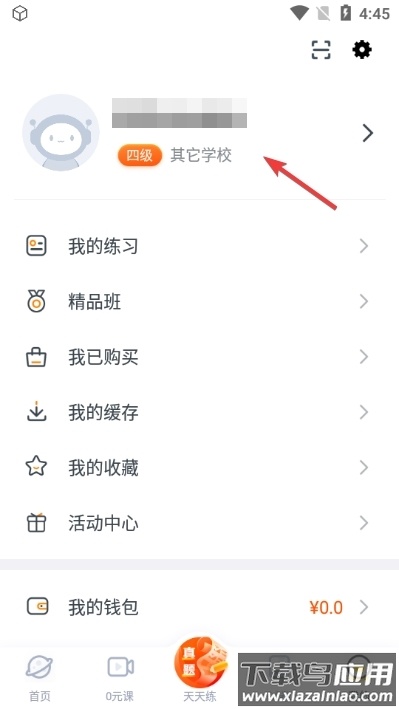 1、首先进入“我的”页面,点击个人资料,当前显示为四级备考状态;