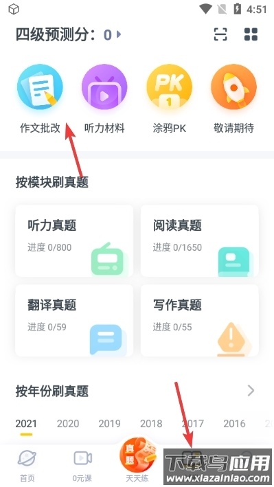 1、进入应用内的试卷页面,找到作文批改功能入口;