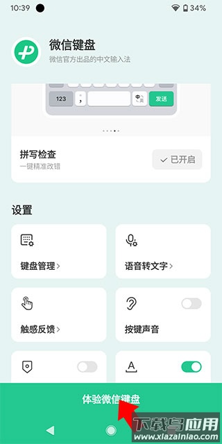 1、打开应用后,点击“体验微信键盘”进入输入界面;