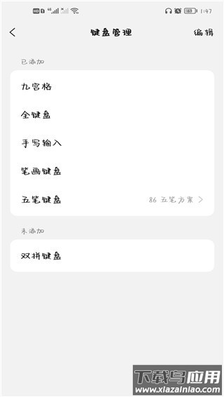4、点击右上角编辑按钮,从键盘列表中将双拼输入法添加到当前启用键盘中。