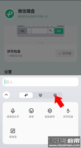 1、在微信输入法键盘界面,点击左上角或上方的设置图标。